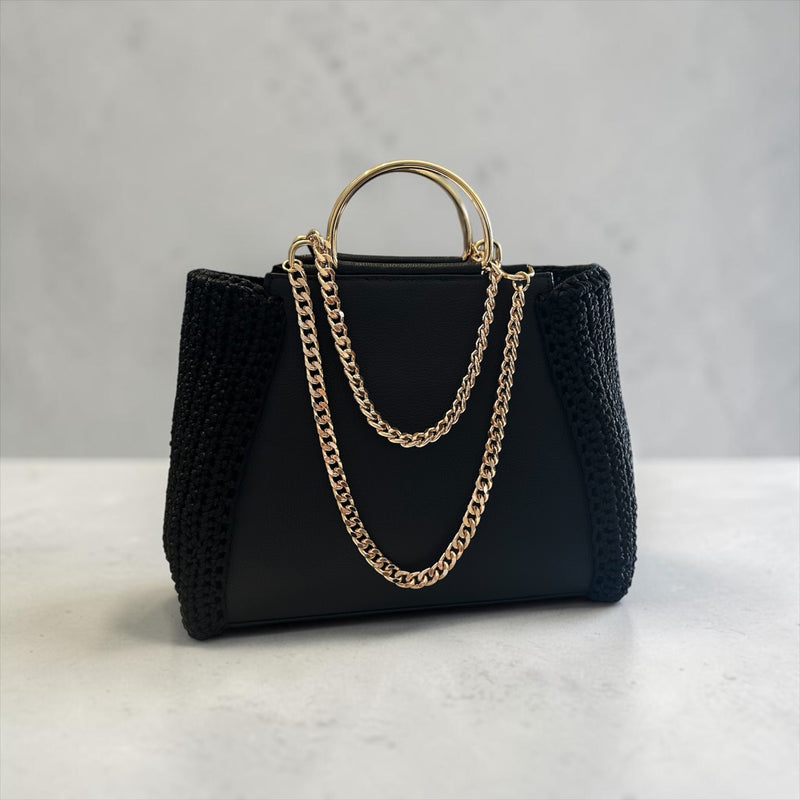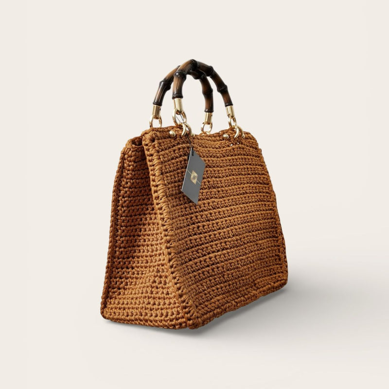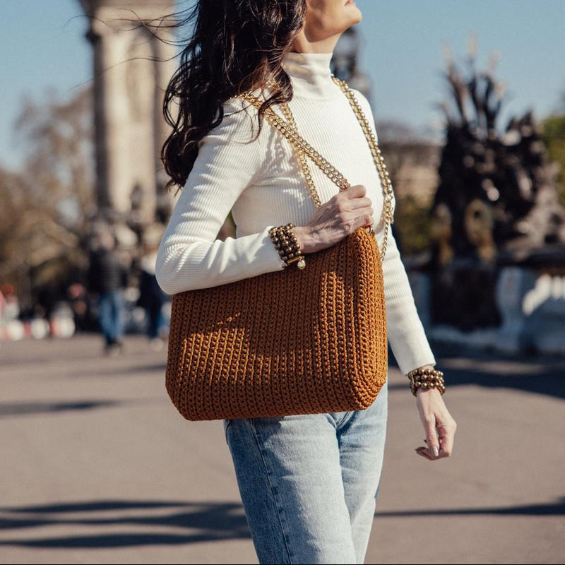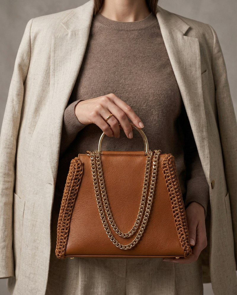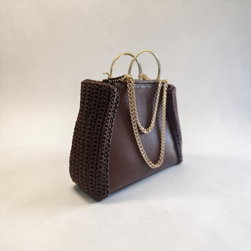 Bolsa Crochet e Couro Legítimo Marrom - PEÇA ÚNICA