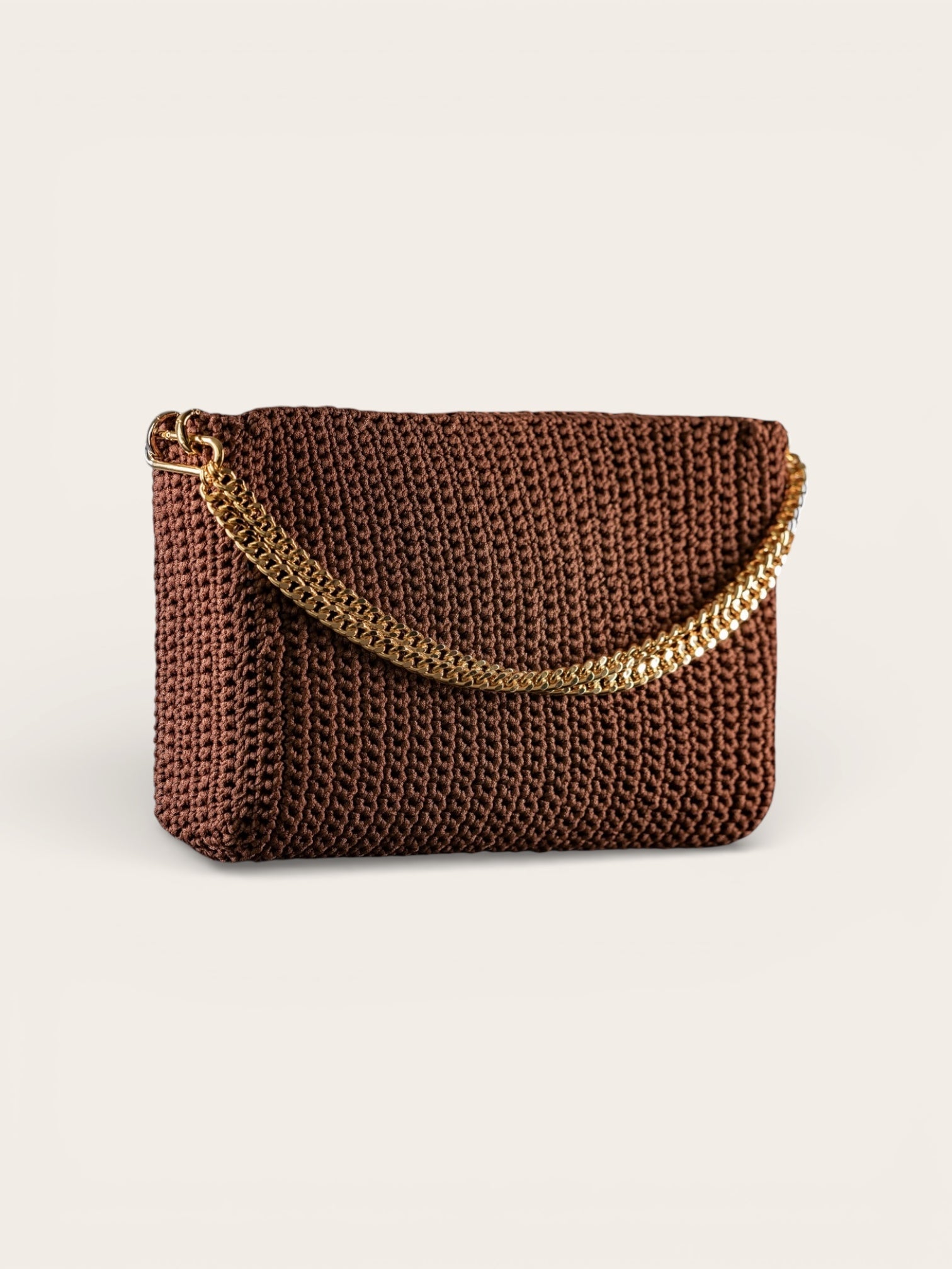 Bolsa em crochet estruturada. Alça em corrente 50cm. Medida 36cmx30cmx10cm. Peso 1,3kg, pode haver variação no peso até 200gr. Pode haver variação de tamanho até 3cm. Não possui forro.