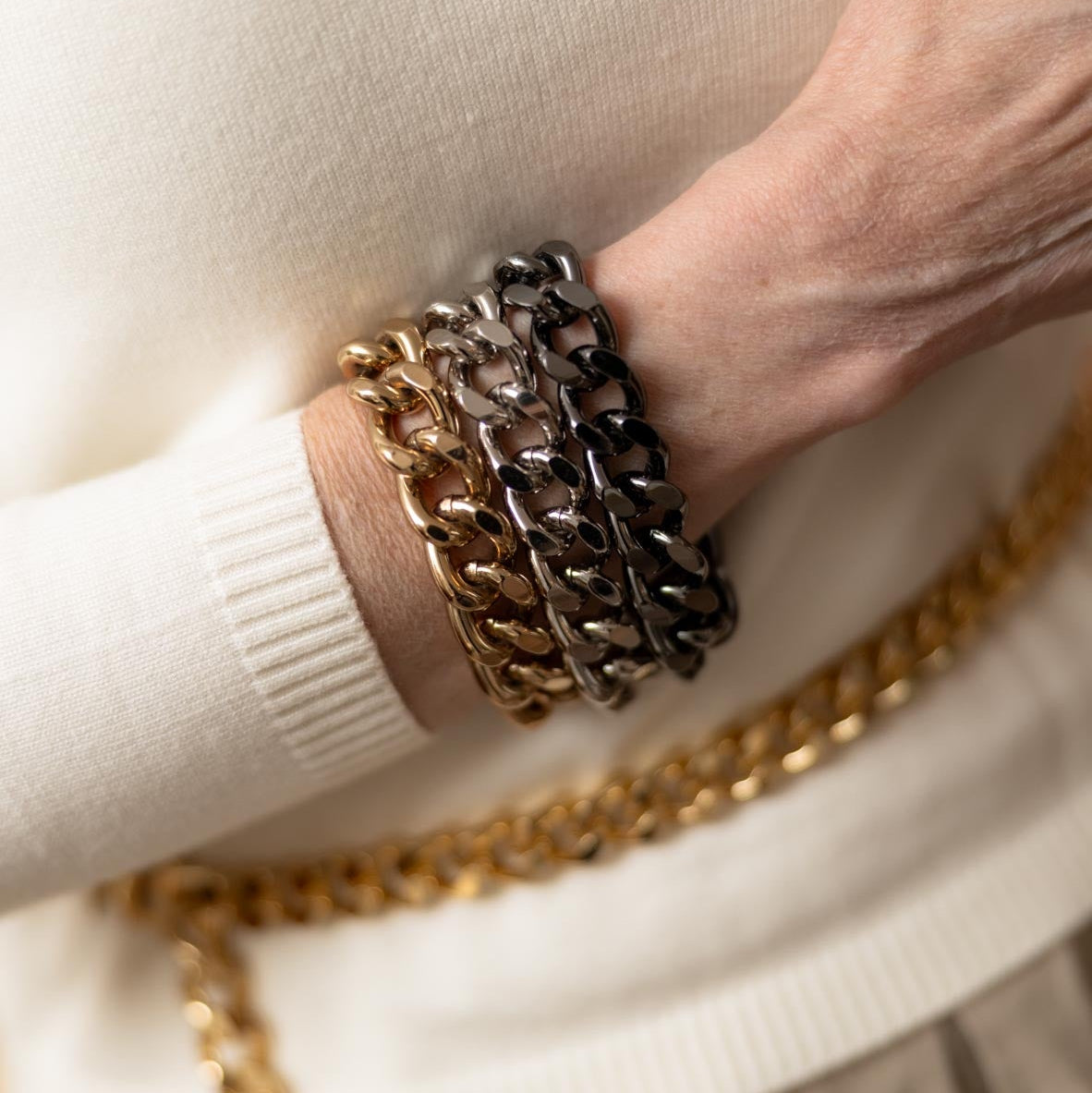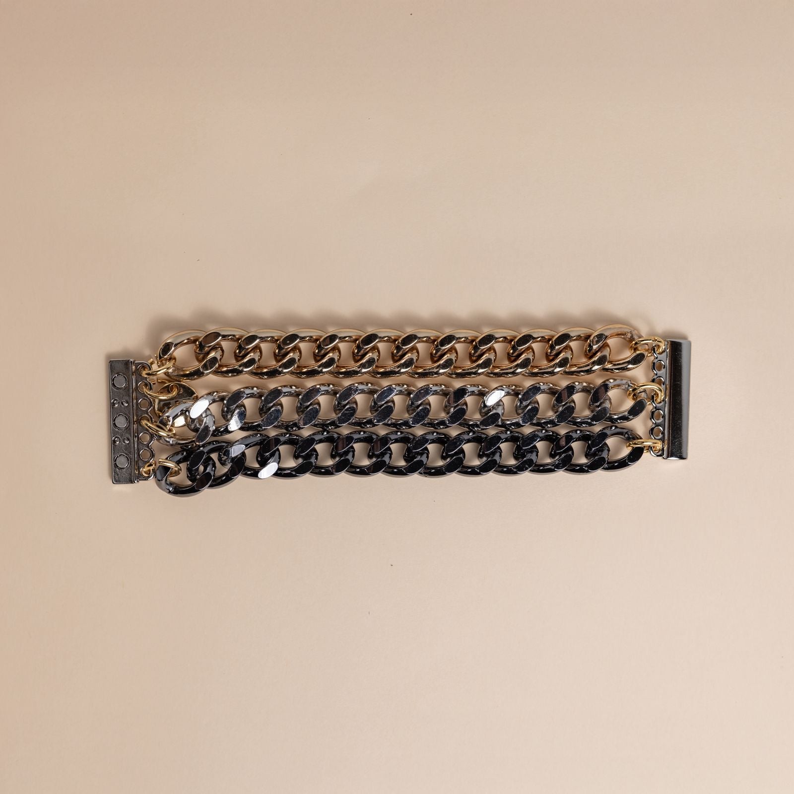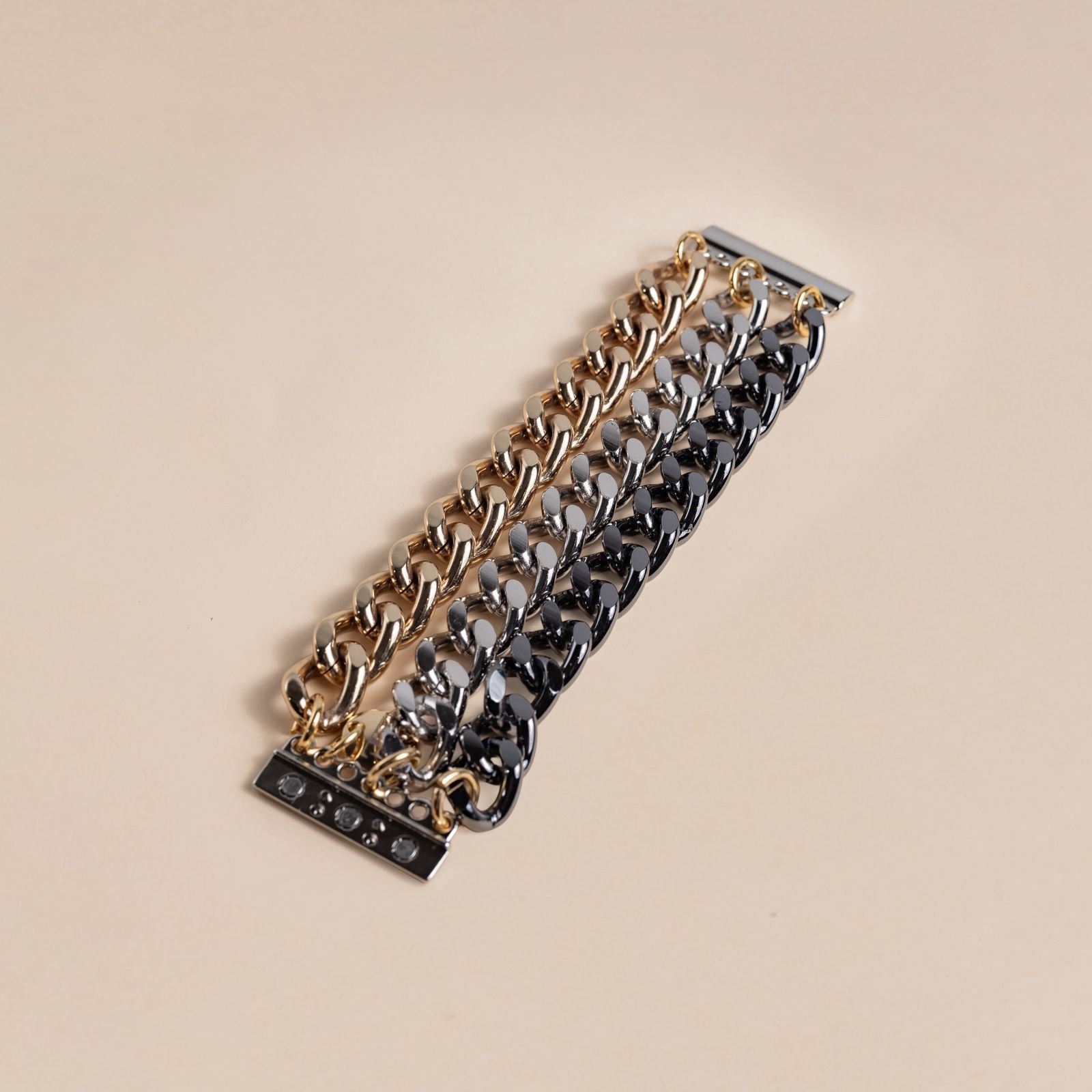 Bracelete em corrente metal premium. Fechamento imantado.