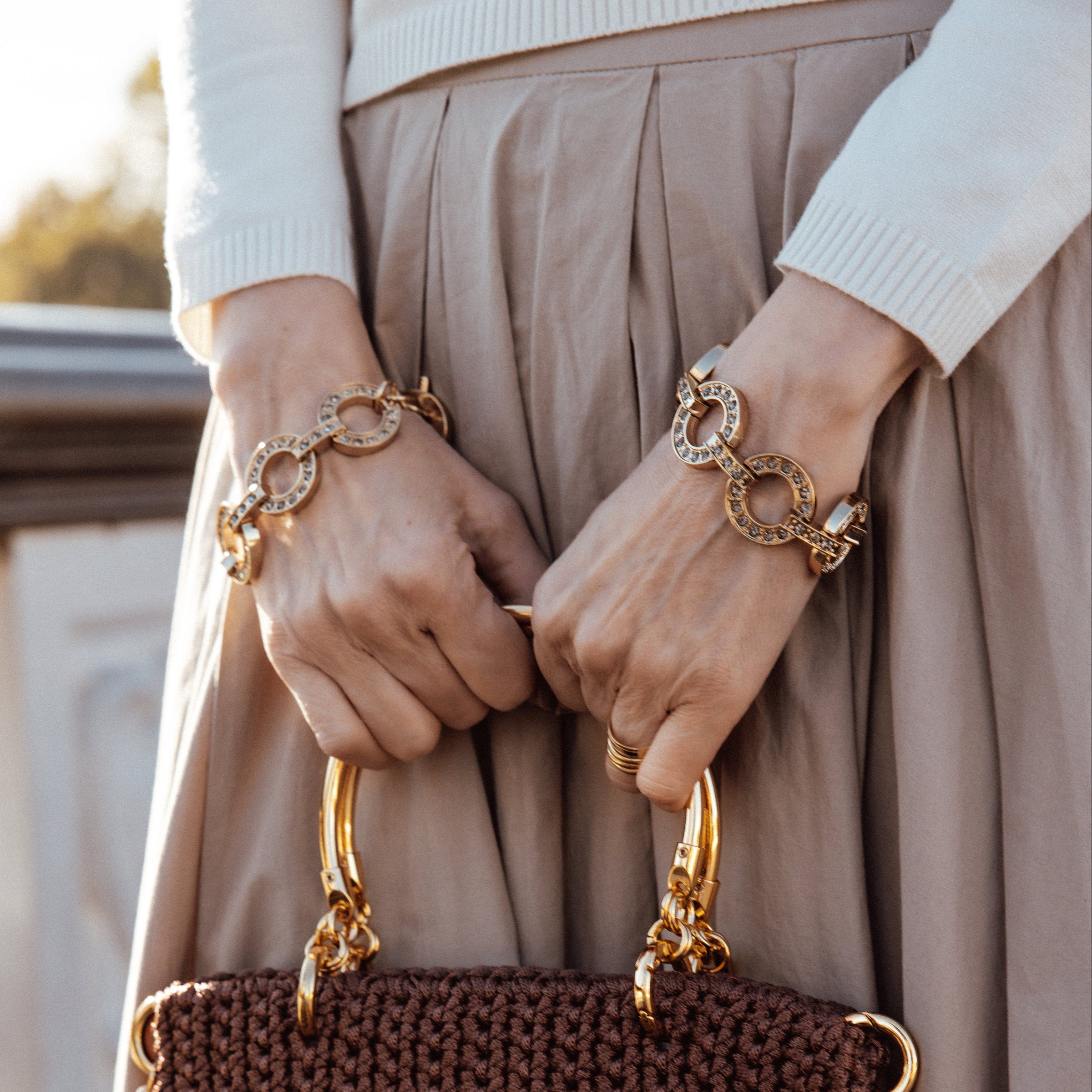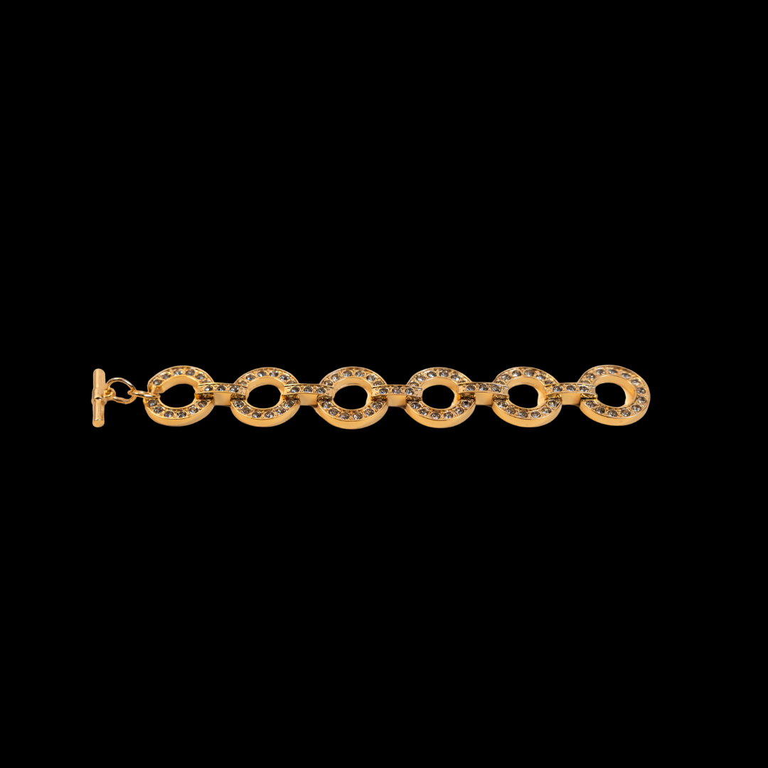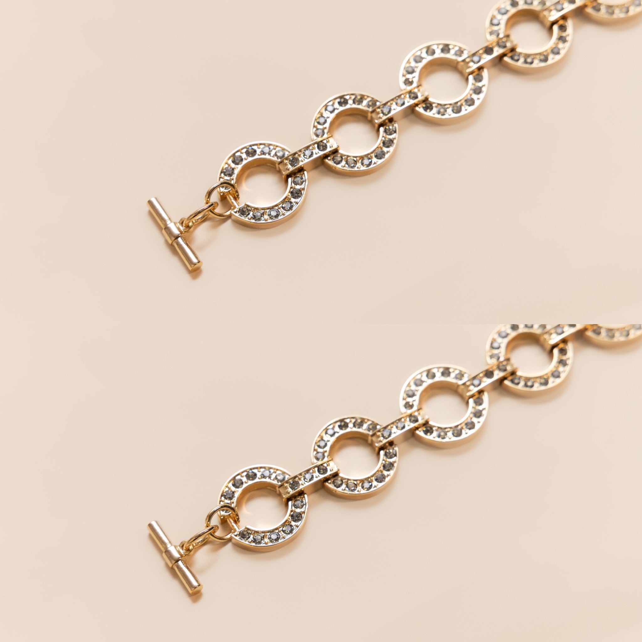 Metal dourado e Strass. Fechamento em mosquete, ajustável. Medida 21cm.