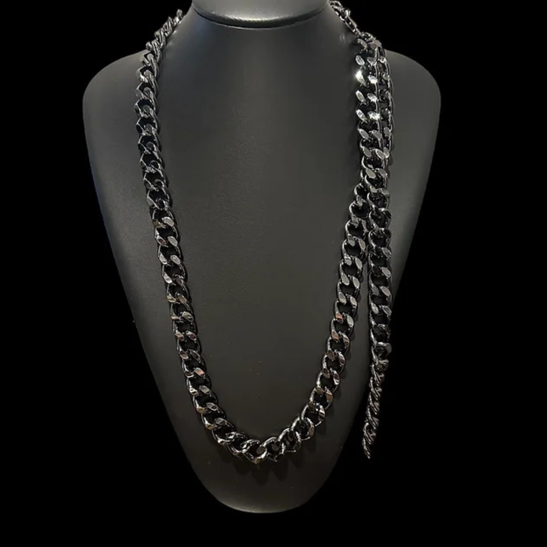 Colar em corrente, pode ser usado como cinto. Medida 1m. Fechamento mosquete.