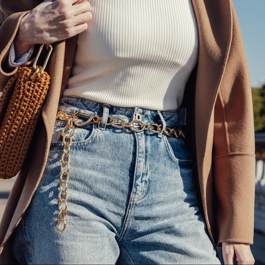 Pode ser usado como cinto, ou bracelete e colar ao mesmo tempo. Metal premium. Medida 1m, ajustável.