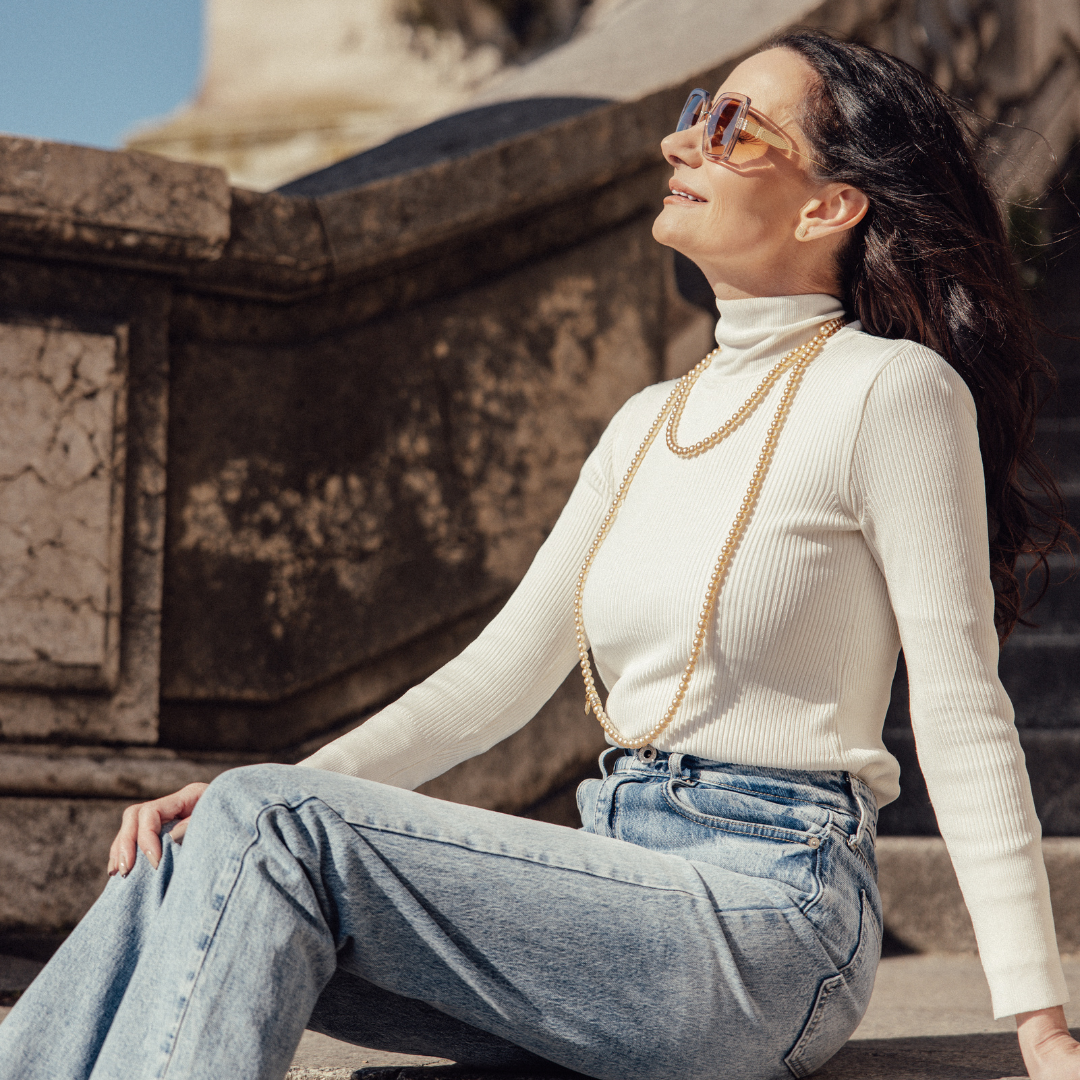 Colar em pérolas shell selecionadas. Medida 1,7m.